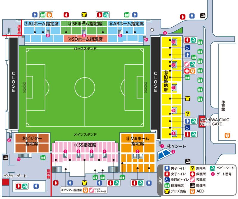 - 「完全な立見席(両ゴール裏1階)」は閉鎖(柏・川崎)